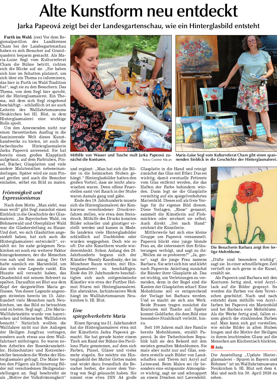 Článek z předvádění techniky podmalby na Zemské výstavě Německu
